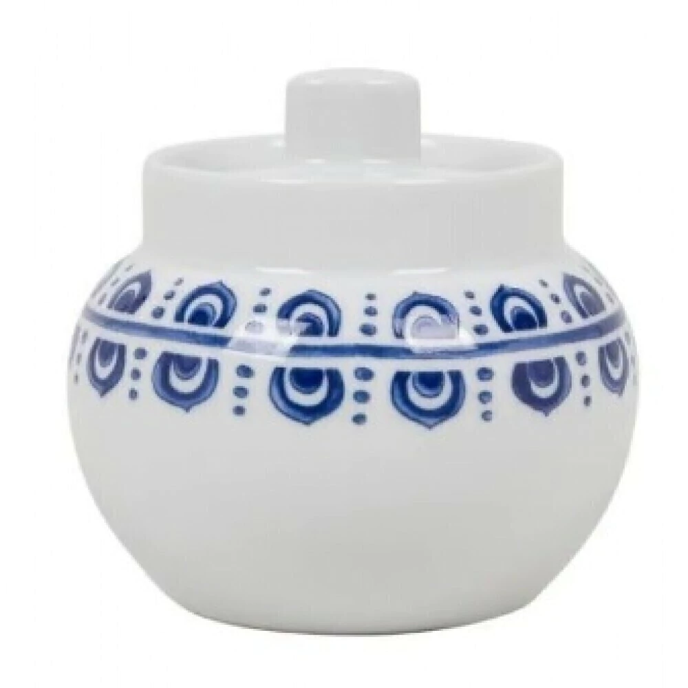 Material: Porcelana Cor: Azul,Branco Dimensões 8,5x9x9 cm Conselhos de Utilização Pode ser usado no micro-ondas. Na lavagem à máquina aconselhamos ciclos curtos a baixas temperaturas. Evitar lavagens frequentes. Azure encontra a sua inspiração na azulejaria portuguesa, quer nos motivos, aos quais é dada uma releitura contemporânea, quer no muito caraterístico lápis-lazúli, resultante do pigmento ultramarine da rocha metamórfica com o mesmo nome. Esta cor-rainha da arte cerâmica acentua a frescura e leveza da decoração, que nos transporta para um ambiente marcadamente mediterrânico.