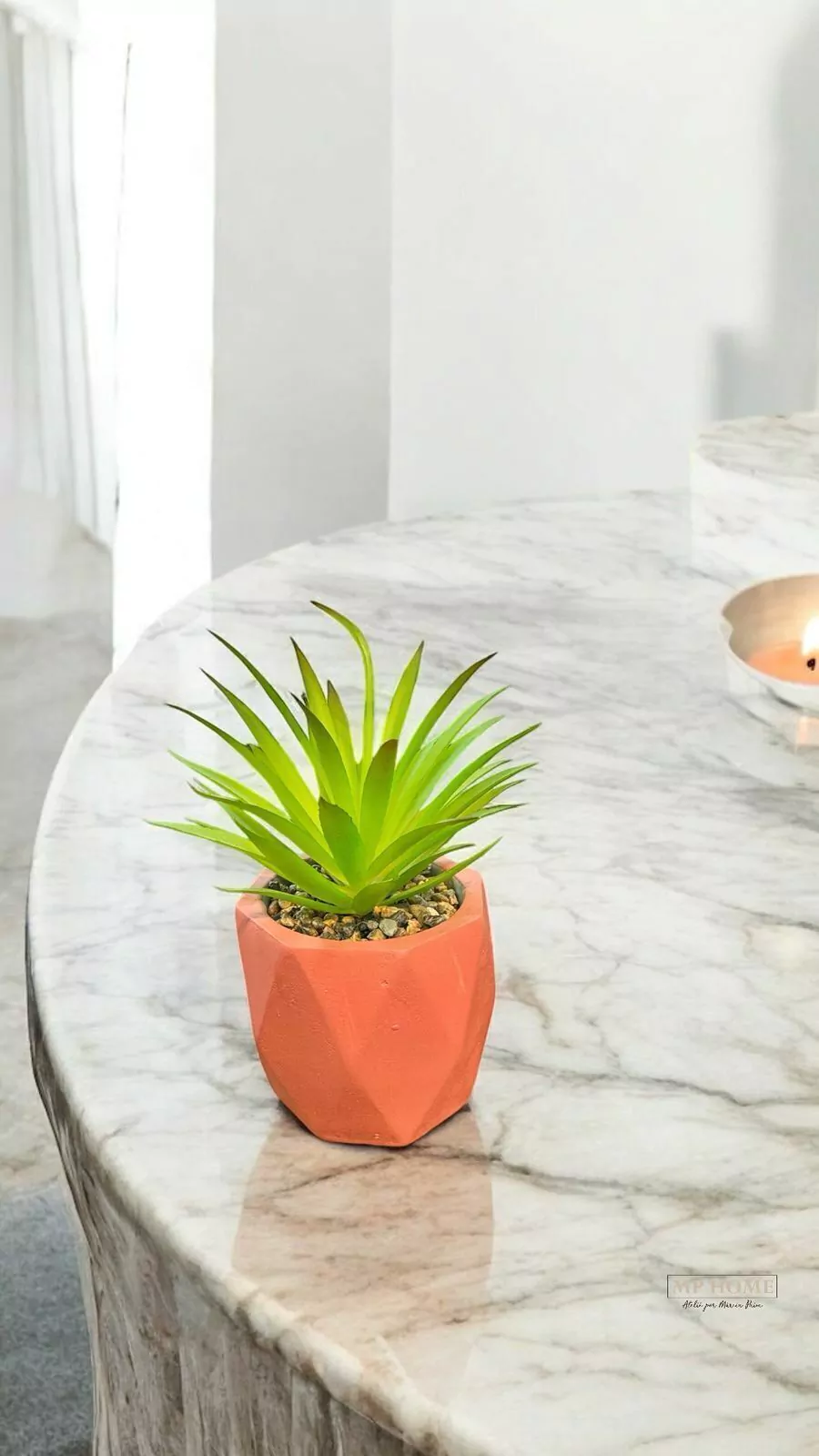 CACHEPOT DE CIMENTO C/SUCULENTA DIAMOND SALMAO 10CM X 17CM
