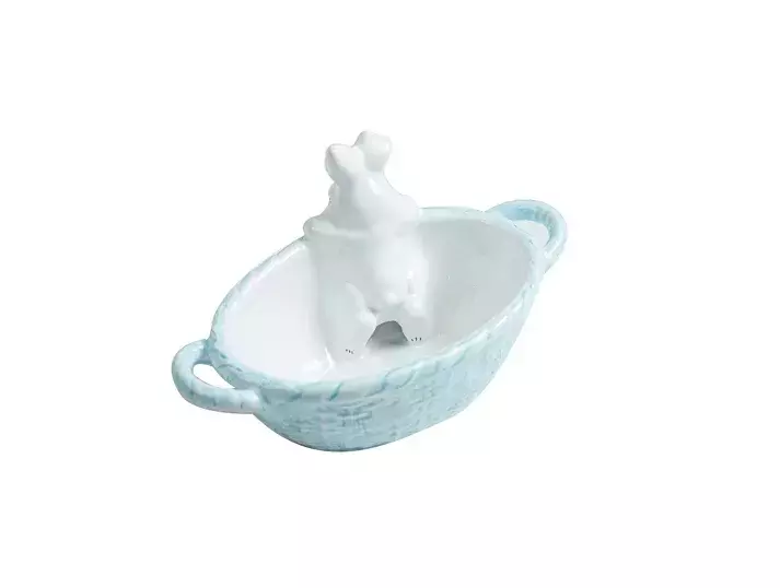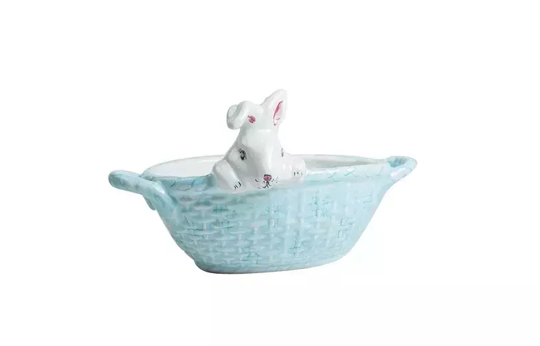 Com design único e original, a Cesta c/ Coelho Peter com Patinhos é feita em cerâmica de alta qualidade, garantindo durabilidade e resistência. A cesta em formato de ovo é decorada com um coelho Peter e três patinhos amarelos, criando um visual alegre e divertido que vai encantar seus presenteados.