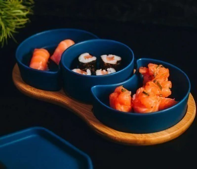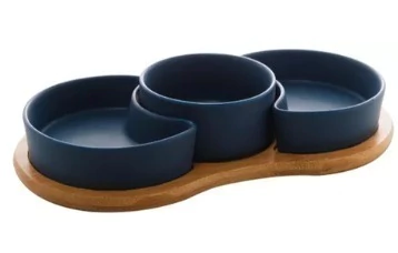 O Jogo 3 Petisqueiras Bambu E Porcelana Azul Matt Bon Gourmet é perfeito para adicionar um toque de charme à sua mesa quando receber convidados.
