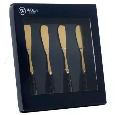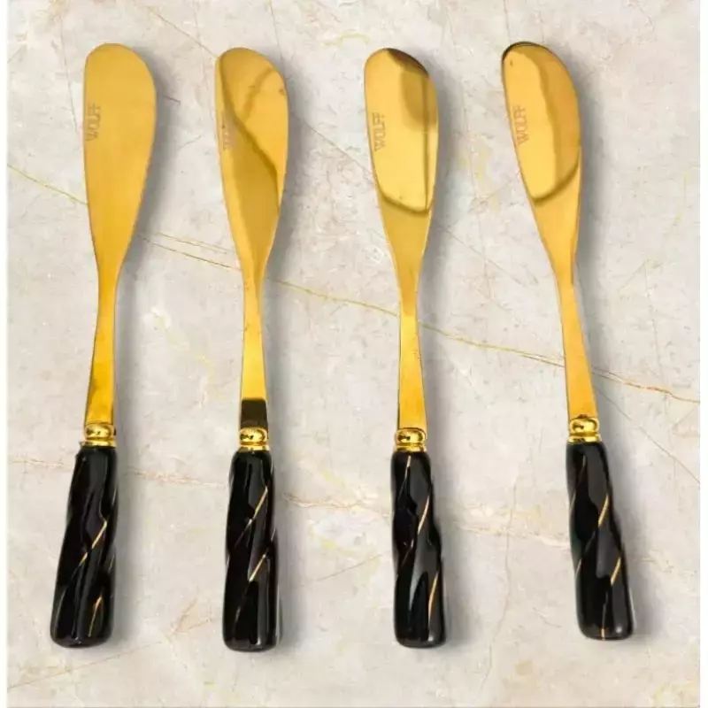 Conjunto 4 Espátulas de Aço Inox Dourado com Cabo de Cerâmica Preto - Wolff O Conjunto de 4 Espátulas da Wolff é a síntese perfeita de sofisticação e funcionalidade. Cada espátula é uma obra-prima que combina a durabilidade do aço inoxidável dourado com a elegância do cabo de cerâmica preta, proporcionando uma experiência única em sua cozinha. Aço Inox Dourado Durável As espátulas são fabricadas em aço inoxidável de alta qualidade, garantindo resistência, durabilidade e facilidade de limpeza. Cabo de Cerâmica Preto O cabo em cerâmica preta não apenas adiciona um toque de elegância, mas também oferece uma pegada confortável e segura durante o uso. Design Elegante Inspiradas na beleza das formas naturais, as espátulas apresentam um design sofisticado que as torna não apenas ferramentas práticas, mas também elementos decorativos na sua cozinha. Conjunto Completo Com quatro espátulas de diferentes tamanhos e formas, você tem à disposição ferramentas versáteis para lidar com diversas tarefas culinárias. O Conjunto 4 Espátulas de Aço Inox Dourado com Cabo de Cerâmica Preto da Wolff é a escolha refinada para chefs e apreciadores da culinária que valorizam a excelência em cada detalhe. Wolff - A melhor experiência em receber, servir e decorar. Contém: 4 Espátulas Fogão: Não Medidas Produto: Altura 1.20cm x Largura 1.70cm x Comprimento 13.00cm Peso: Kg Cor: Preto Material: Aço Inox Lavar com detergente neutro, esponja macia e secar imediatamente. Não utilizar outros produtos químicos.