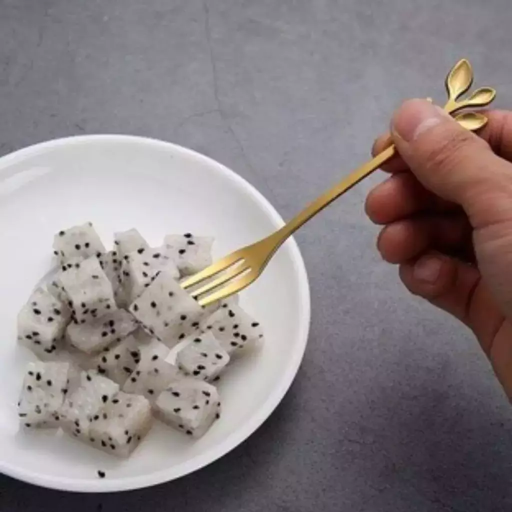Adicione um toque de elegância e sofisticação à sua mesa com o Conjunto de 4 Garfos para Aperitivo Leaves Dourado da Wolff.