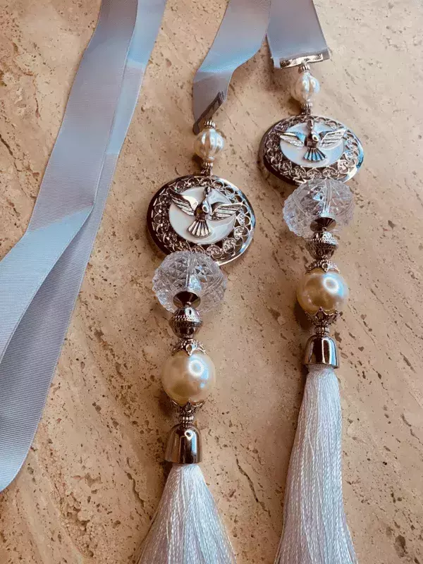 ESCAPULÁRIO CONFECCIONADO EM RESINA, MEDALHA NIQUELADA COM FITA DE CETIM E TASSEL