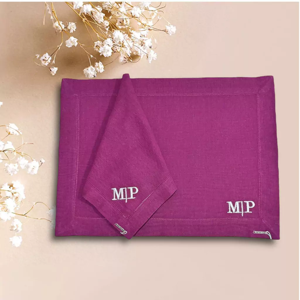 GUARDANAPO MARSALA PERSONALIZADO LINHO MISTO COM AJOUR 50X50CM