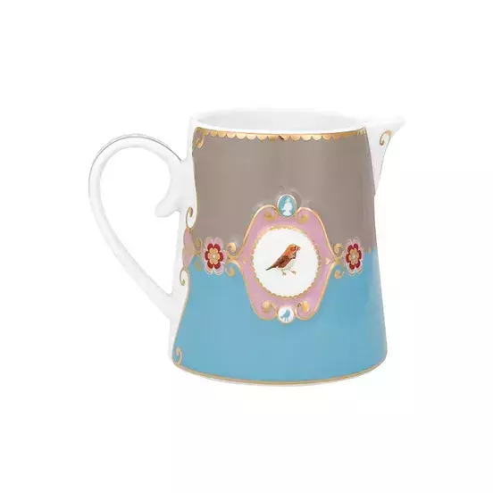 A jarra pequena da Love Birds tem capacidade de 270ml, aproximadamente 8cm de altura, 12cm de largura, 9cm de profundidade e é feita com a mais delicada porcelana.