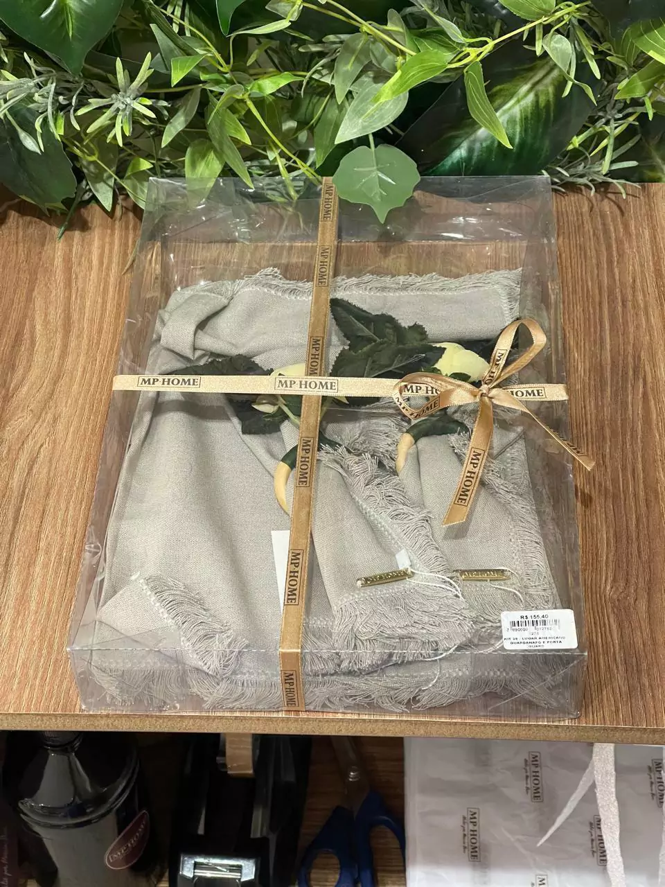 02 GUARDANAPOS CONFECCIONADOS EM LINHO MISTO COM BIRDADO E DESFIADO NA COR FENDI