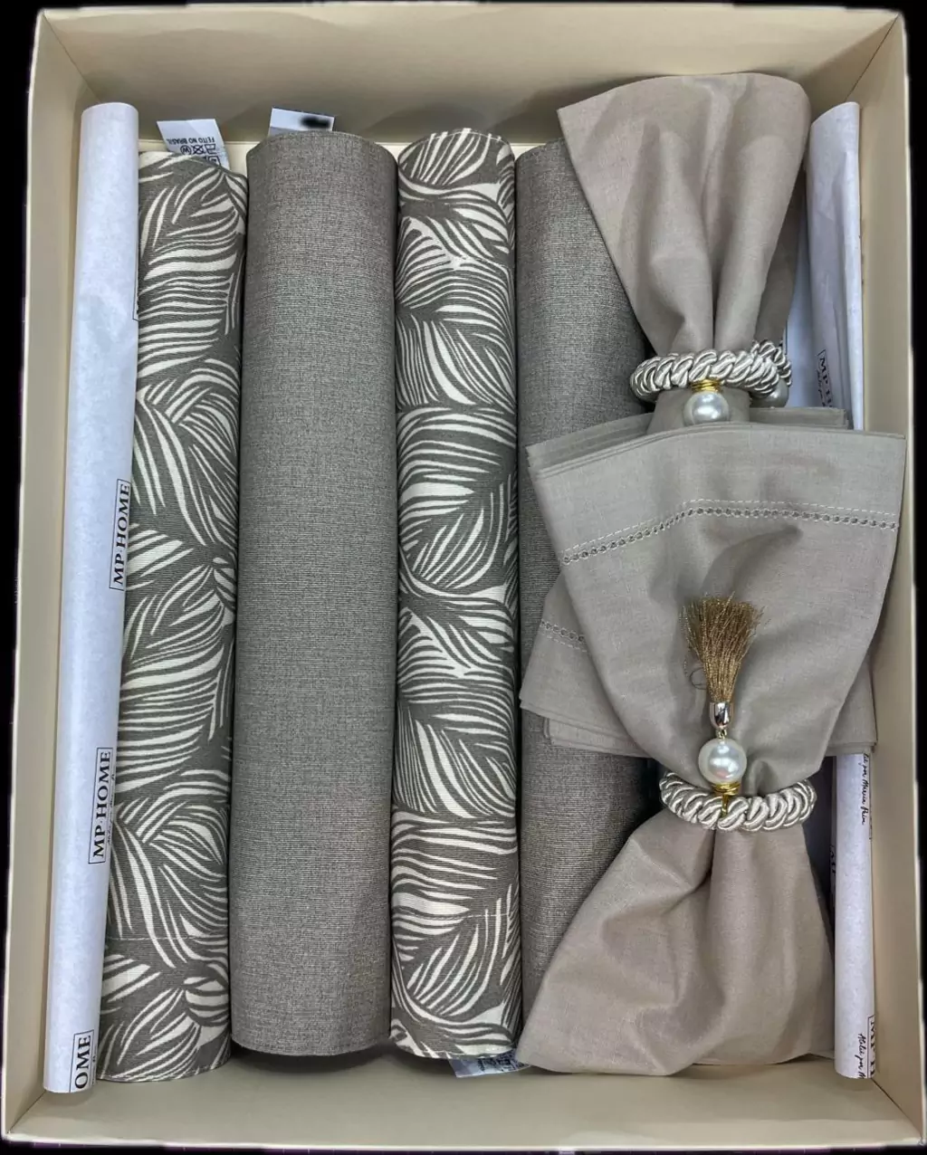 04 PORTA GUARDANAPOS COM TASSEL, CORDÃO DE SÃO FRANCISCO E PÉROLA