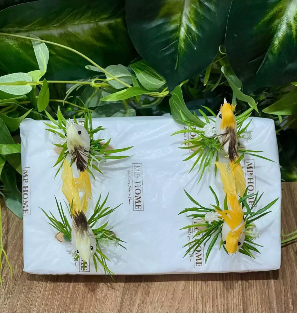 KIT COM 04 PORTA GUARDANAPOS PÁSSAROS AMARELO