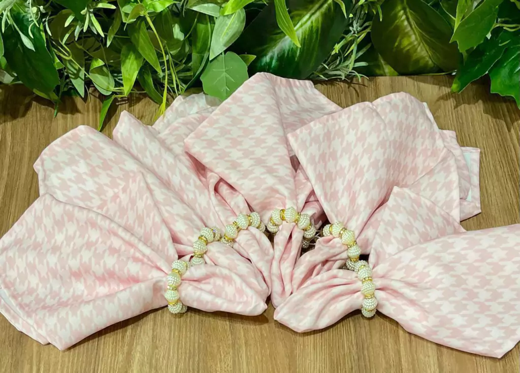 06 PORTA GUARDANAPOS CONFECCIONADOS EM PÉROLAS CRAQUELADAS