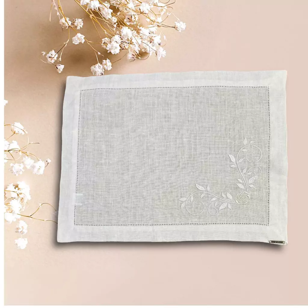 LUGAR AMERICANO CONFECIONADO EM LINHO PURO COM BORDADO E PONTO AJOUR