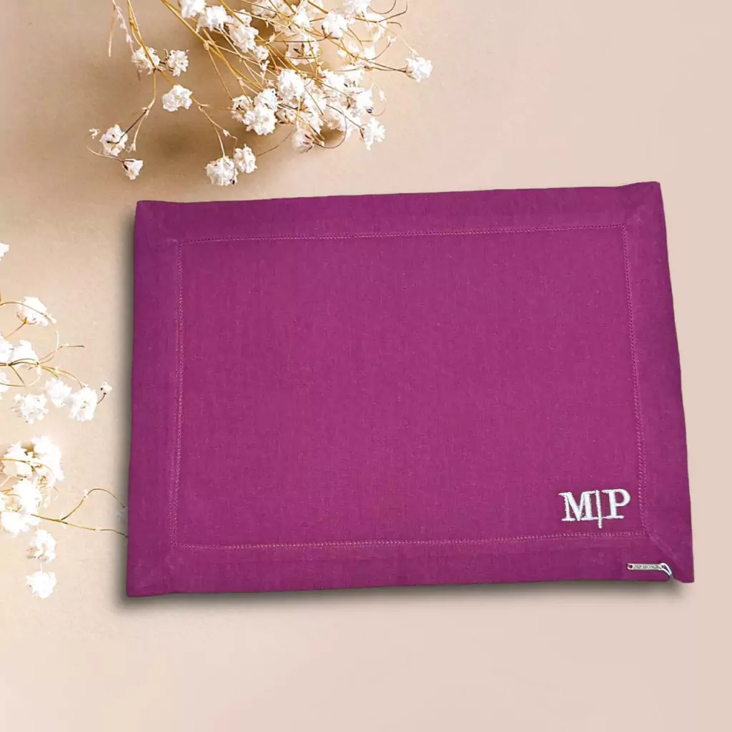 Lugar Americano Confecionado em Linho Misto - 1 Face Marsala Bordado 35x45cm