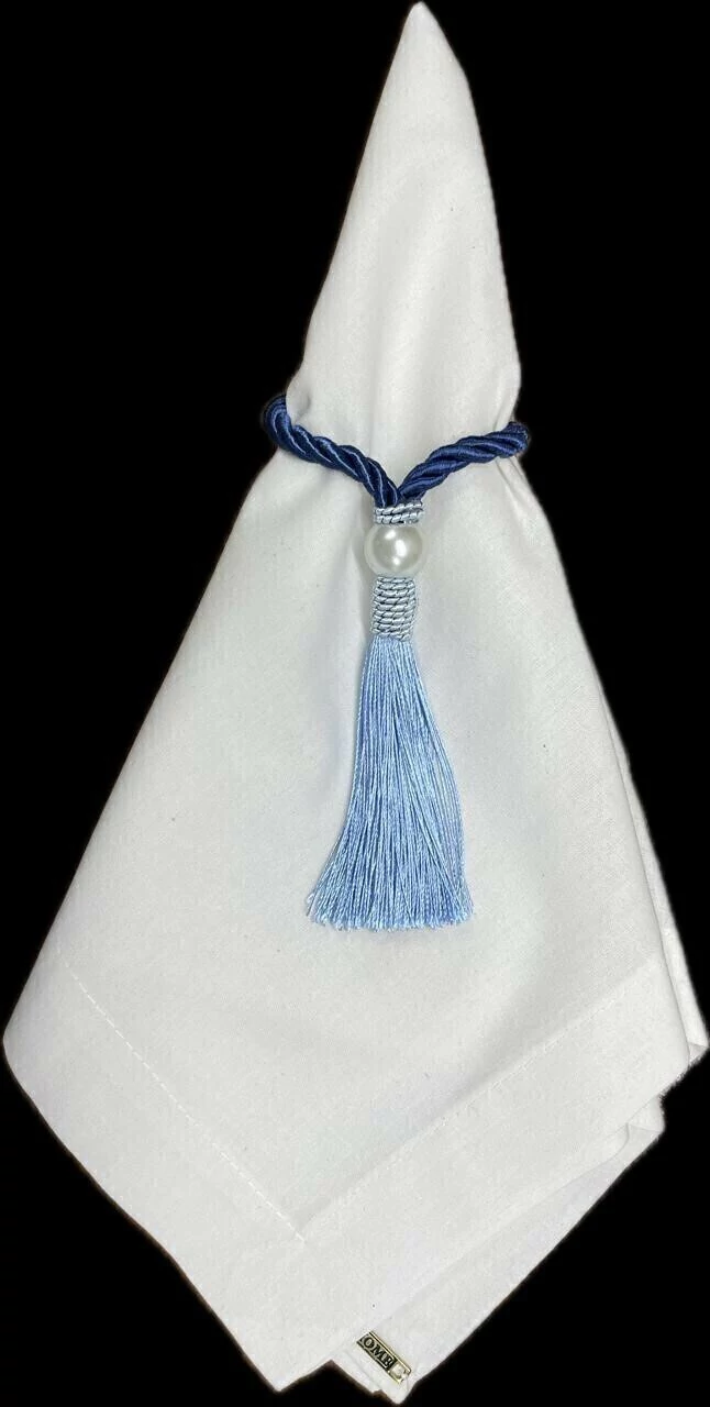 PORTA GUARDANAPO CORDAO SAO FRANCISCO AZUL PEROLA E TASSEL AZUL CLARO