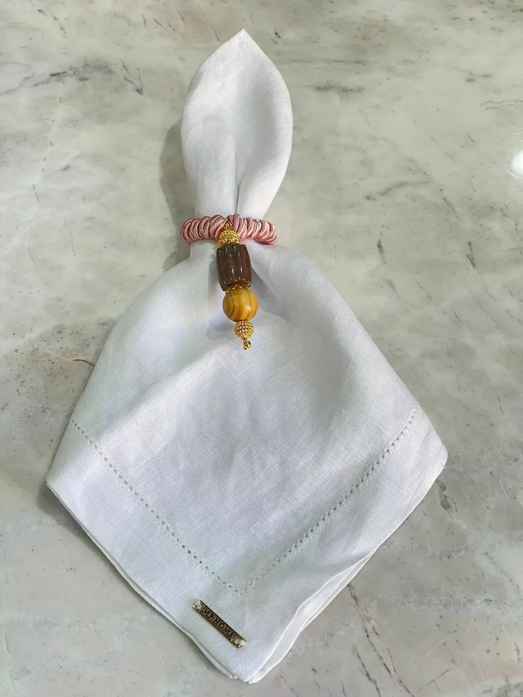 PORTA GUARDANAPO CORDÃO SAO FRANCISCO ROSA SECO CONTA DE MADEIRA E PEDRA MARROM