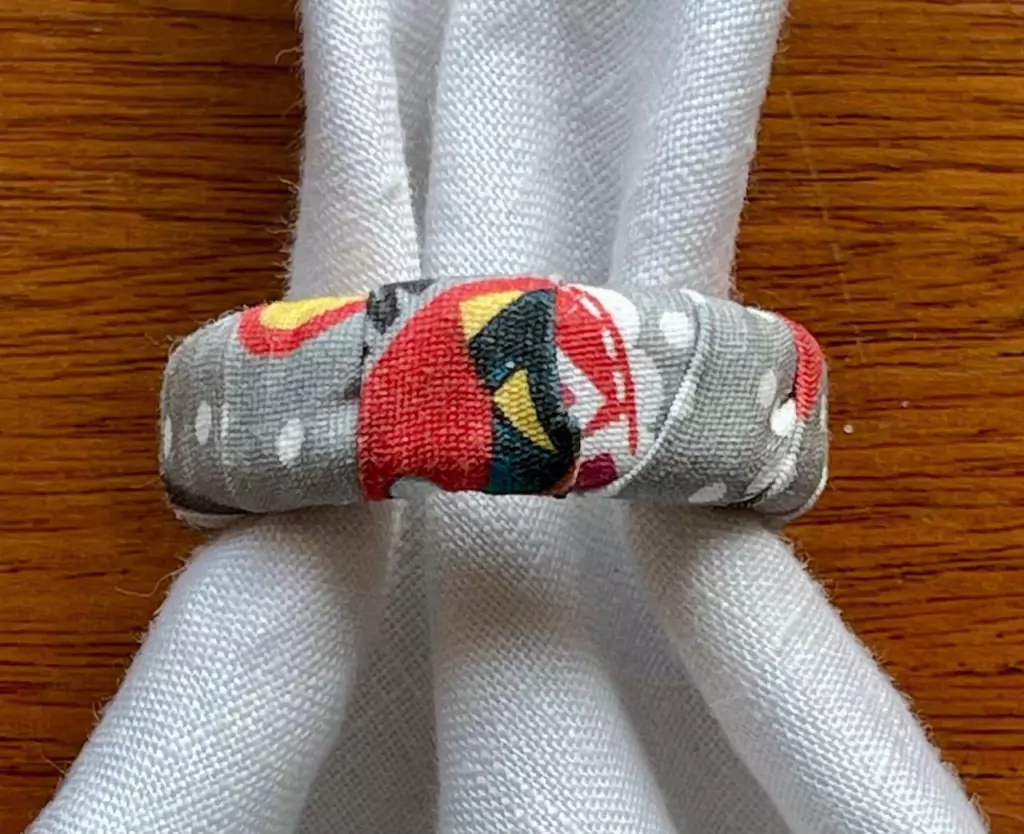 PORTA GUARDANAPO CONFECCIONADO EM MADEIRA E TECIDO