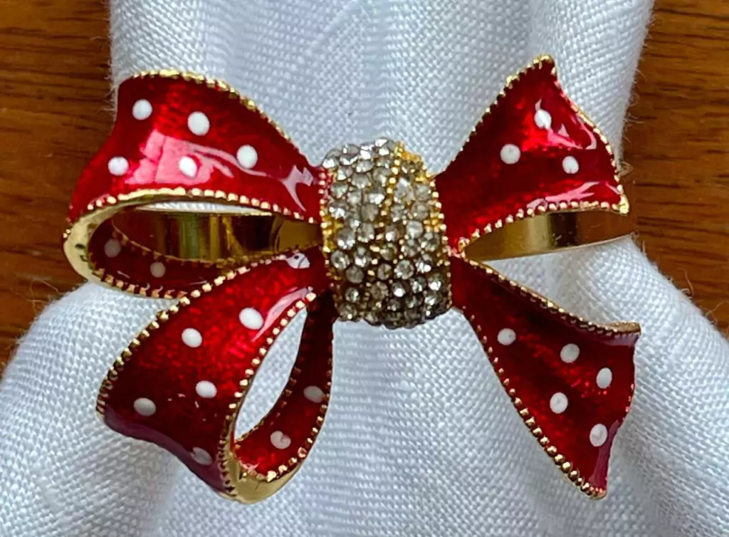 PORTA GUARDANAPO LACO VERMELHO POA BRANCO PEDRAS 23