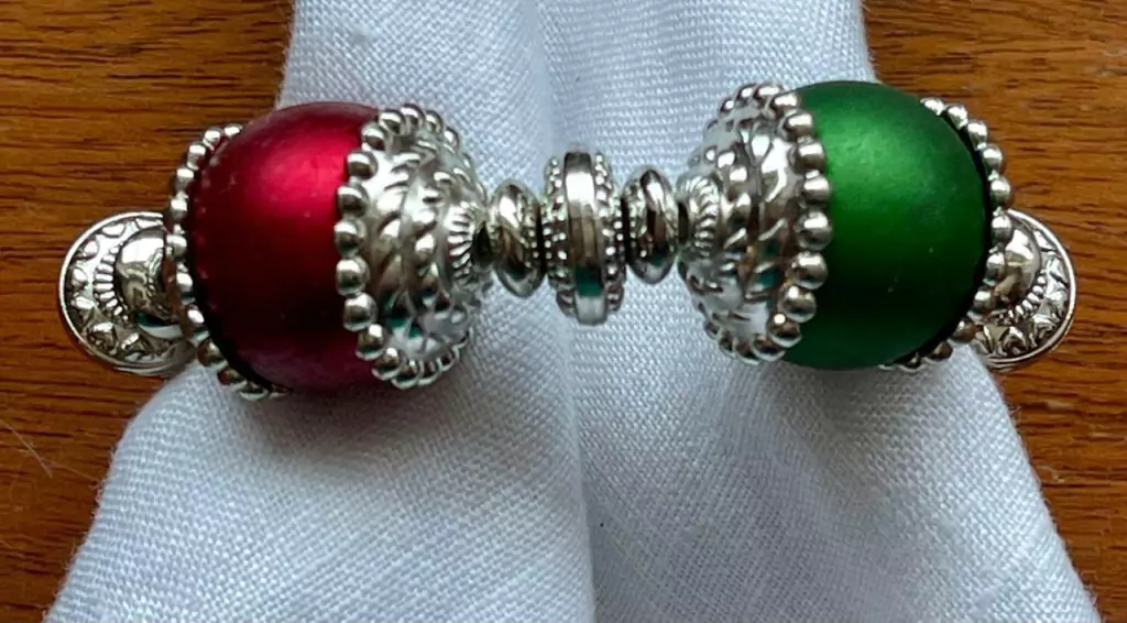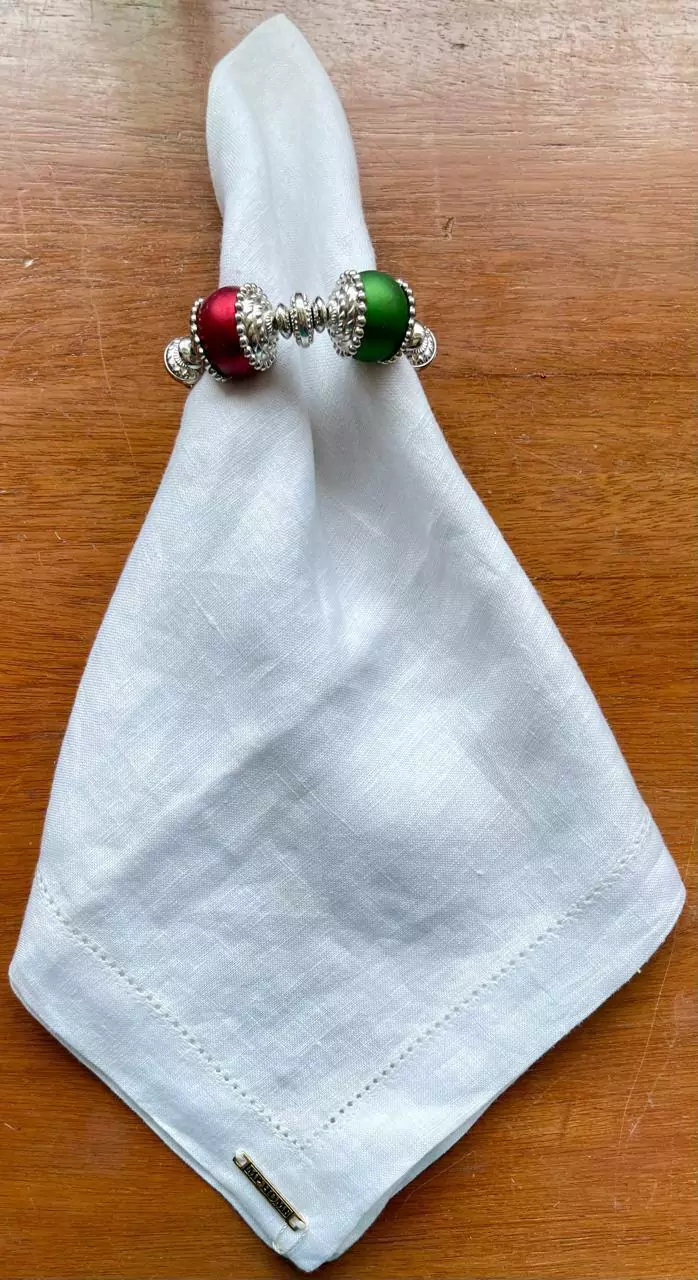 PORTA GUARDANAPO NATAL ANEL VERDE/VERMELHO PRATA 23