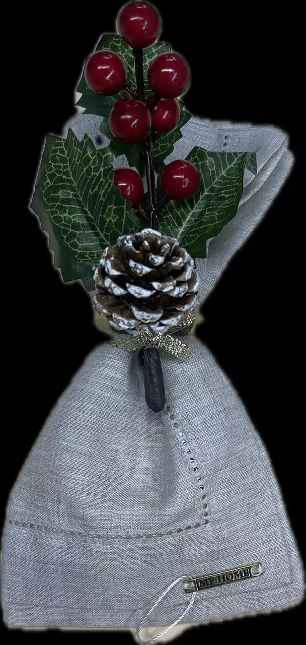 PORTA GUARDANAPO NATAL BUQUE PINHAS AZEVINHOS LAÇO DOURADO
