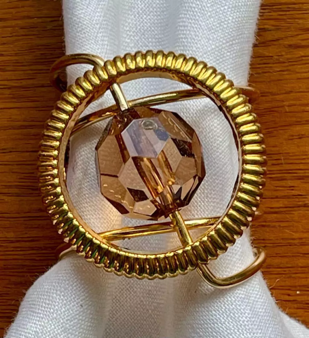 PORTA GUARDANAPO PEDRA MARROM ARGOLA DOURADA