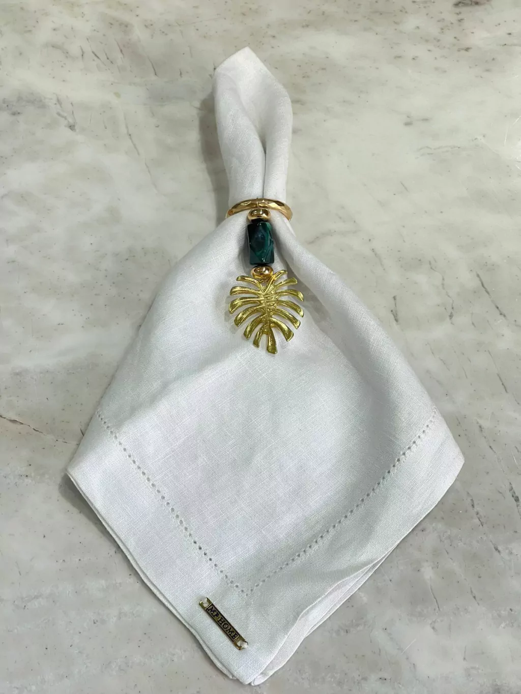 PORTA QUARDANAPO FABRICADO EM RESINA VERDE MESCLADA E COSTELA DE ADÃO EM METAL