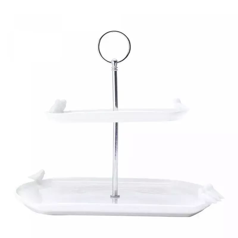 Encante seus convidados com o Prato Duplo de Porcelana para Doces Birds Branco da Wolff.