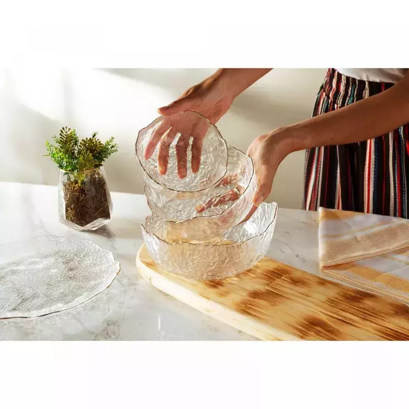 Desfrute de momentos especiais com o Prato para Servir de Cristal Martelado com Borda Dourada Taj da Wolff.