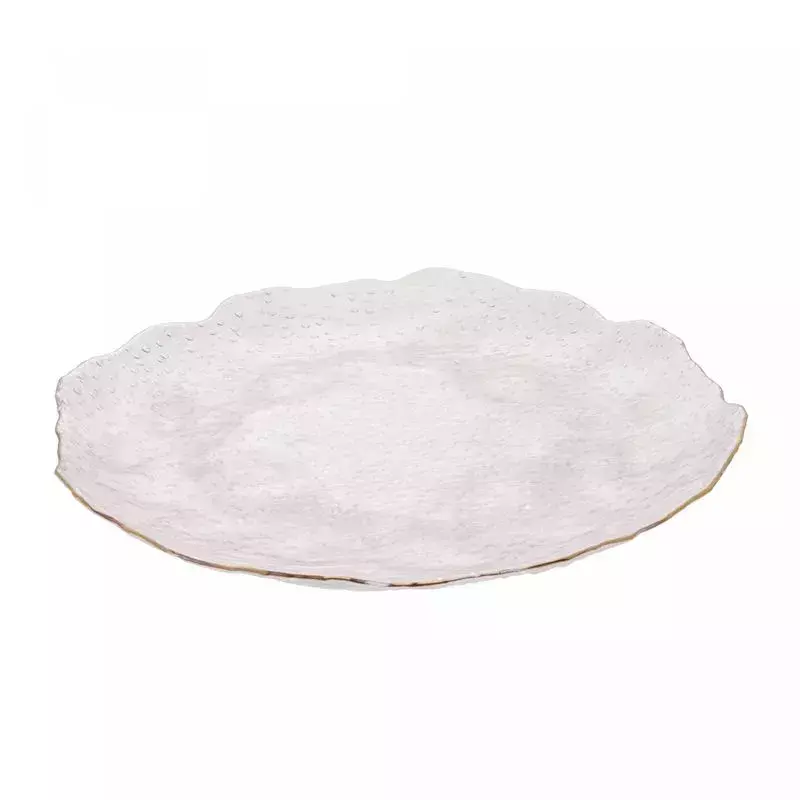 Prato para Servir de Cristal Martelado com Borda Dourada Taj 26cm - Wolff