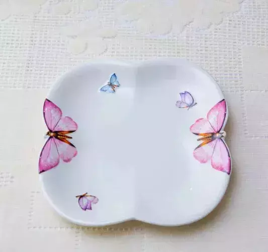 Prato para Sobremesa de Porcelana Borboletas Branco 19cm -Wolff