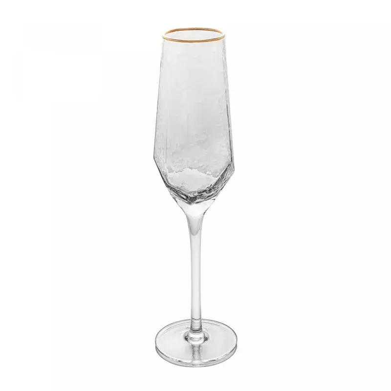 A borda dourada confere um toque elegante e sofisticado às taças, elevando a experiência de celebrar com champanhe.