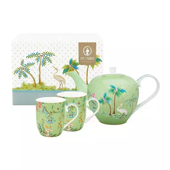 O Tea Set pequeno da Jolie é composto por 1 bule e 2 canecas.