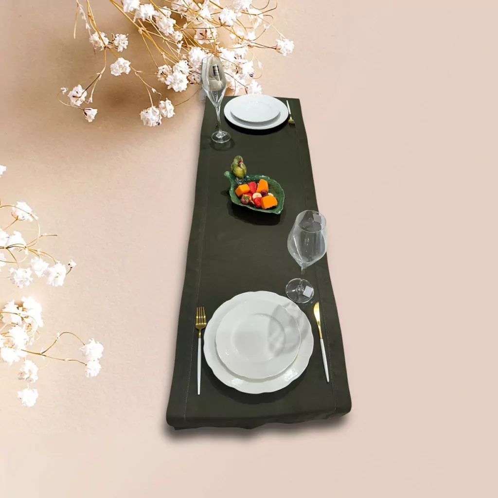TRILHO DE MESA 1F VERDE MUSGO C/AJOUR LINHO MISTO 15X040CM